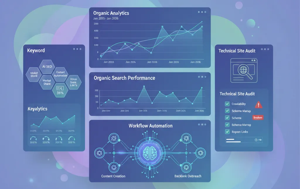 Automation enables enterprise teams to monitor, analyze, and act at scale. SEO tools help track rankings, identify technical issues, and measure content performance across large datasets. Automation reduces manual workload while improving consistency and response time.
