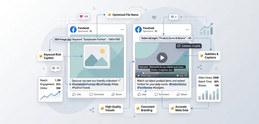 - Optimize Post Descriptions: Include keywords in link previews, video captions, or image descriptions. This ensures both Facebook and external search engines understand your content.